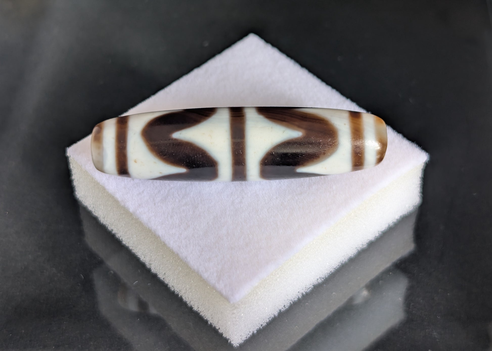 Antique Double Tiger Tooth Dzi Bead